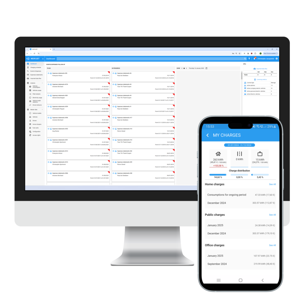 NEOFLEET offre une gestion de flotte pour l’ensemble des véhicules (électriques, hybrides ou thermiques) et propose des outils de gestion adaptés à vos besoins.