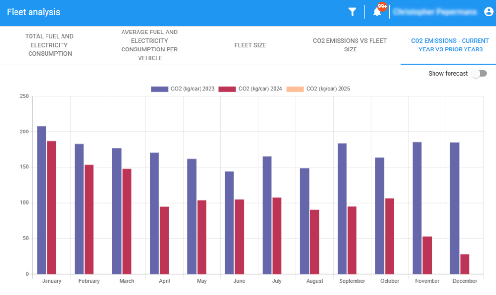 NEOFLEET calcule vos émissions réelles de CO2 en temps réel en se basant sur plusieurs facteurs : le kilométrage de chaque véhicule, sa consommation de carburant, et d’autres données spécifiques. Le système permet également d’établir des prévisions grâce à l’encodage de vos commandes de véhicules et leurs dates de livraison.