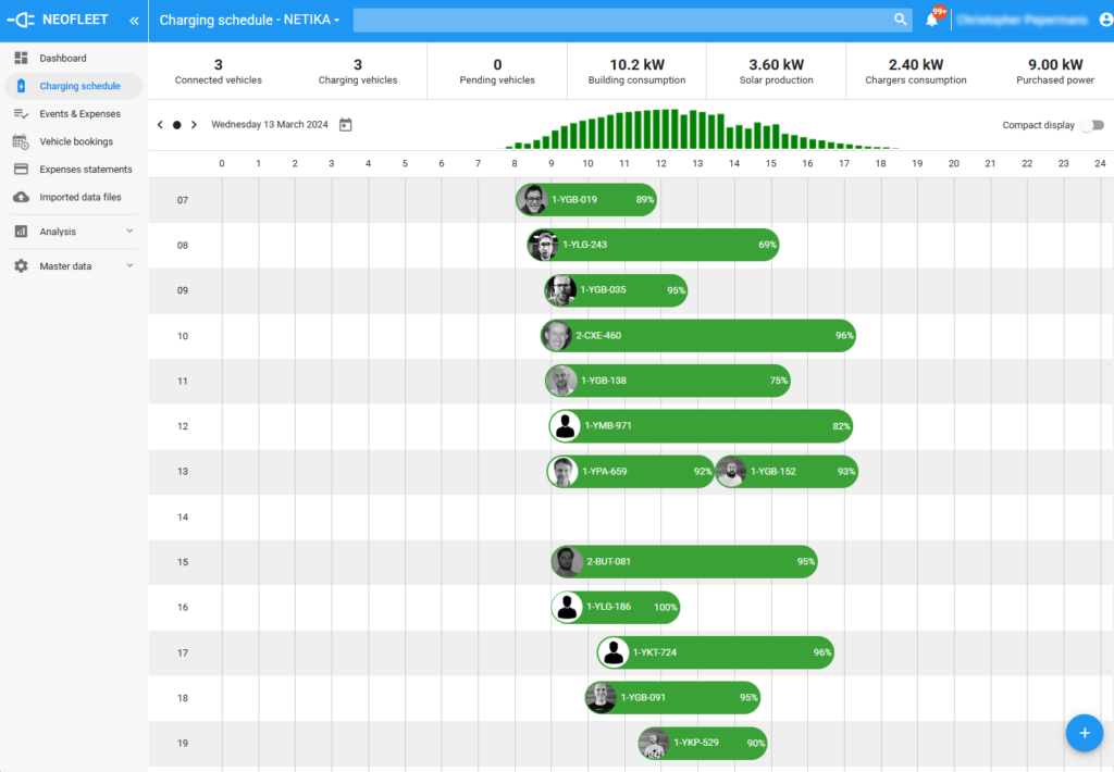 Le logiciel de gestion de borne de recharge NEOFLEET automatise entièrement le processus de recharge via son application mobile. Les employés indiquent simplement leur besoin et leur heure de départ, et le système prend en compte leurs contraintes spécifiques (comme l’impossibilité de charger à domicile). Cette automatisation permet à chacun de travailler sereinement, sans stress lié à la recharge.